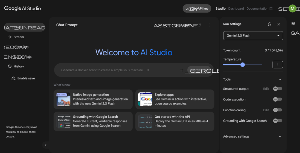 Step 1: Access Google AI Studio Open your web browser and go to Google AI Studio. You can find the link in the video description for quick access. This is the simple interface where you’ll be working. You can even switch between light and dark mode in the settings.